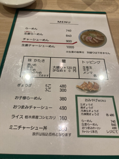 らーめん麺少なめ・生姜らーめん