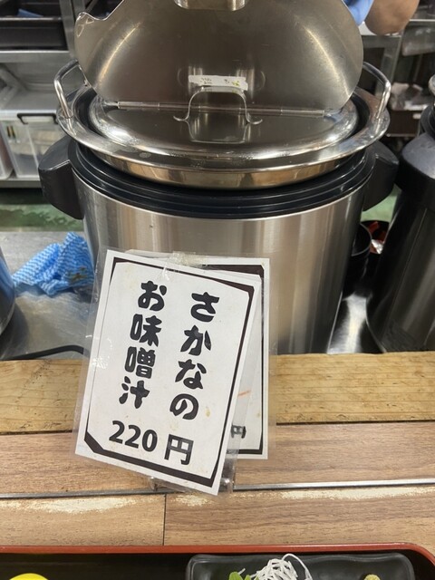 さかなのお味噌汁の中に入る魚は刺身用の切り落としで、骨が全くなく、魚の出汁がたっぷり入って美味!
