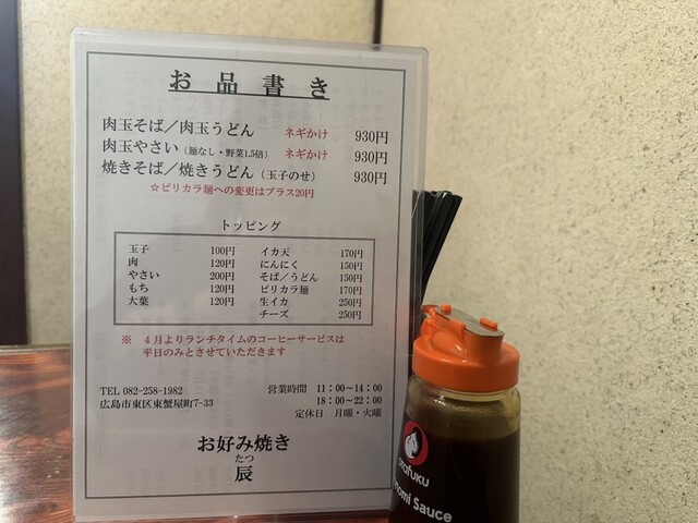 お好み焼き 辰広島(広電)、広島、稲荷町/お好み焼き、焼きそば、鉄板焼き