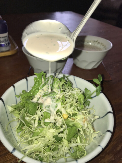 サラダ取り分けて自家製ドレッシング