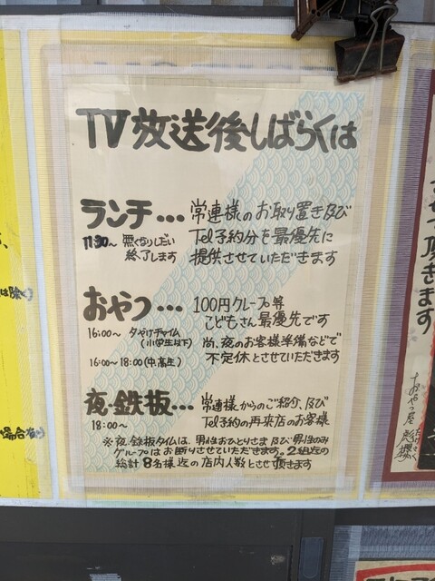 なっており、常連さんのお取り置き、電話予約で