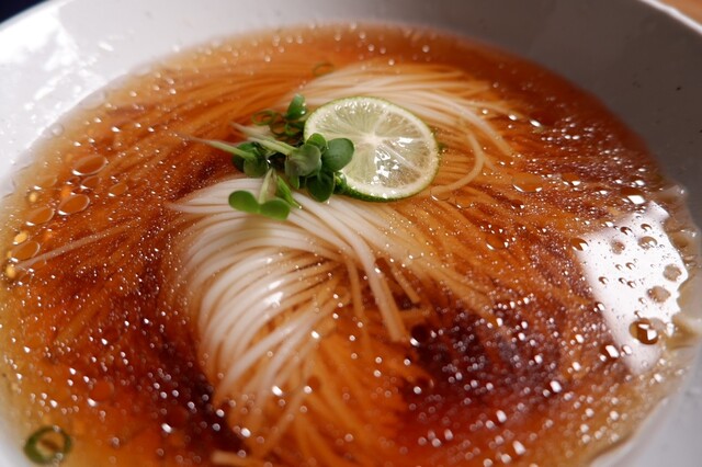 看板メニューのら〜にゅうめんは、鰹風味がしっかりしているのに、香味油から煮干の旨味が出ていて、あっさり和風ラーメンのようで〆にピッタリの逸品‼️