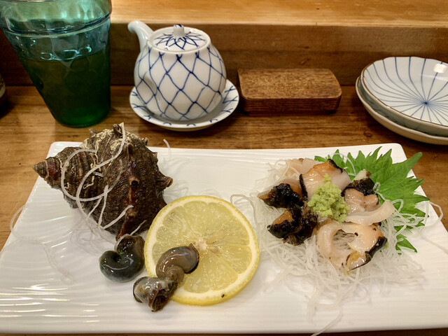 付き出しの「カツオの血合い」 梅が隠し味に効いていて、美味しいです。