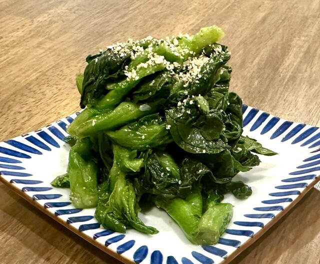 左、菜の花ナムル 右、ササミのしば漬タルタル