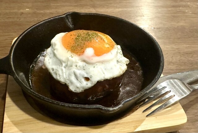 生地はかなり捏ねられて、粘りがもっちりに変化。脂がよく染み渡りジューシー。デミソースが濃くなく程よい甘味が食欲を掻き立てます。