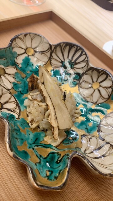 今回の特筆は煮えばな。今までも色々なお店でいただいた事がありましたが、この煮えばなは唯一無二。熱々の少し芯を感じるご飯の上に焼き松茸が乗り、とても美味しいお塩がぱらり。