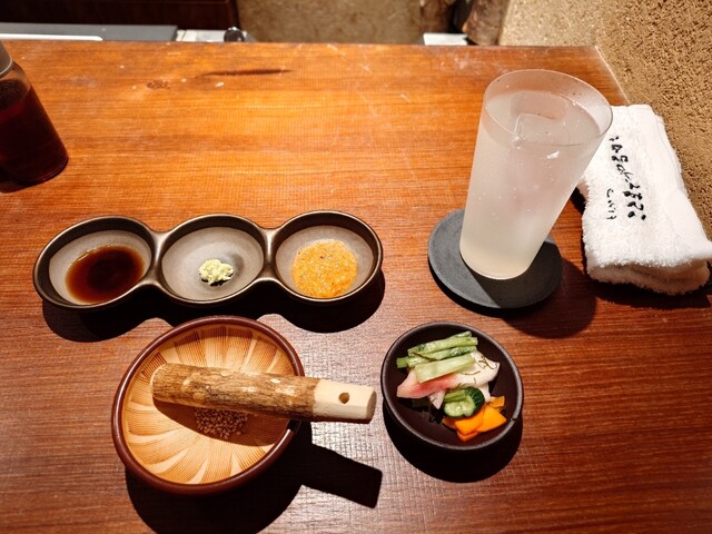 先にポン酢、わさび、メキシカンな味のソースが提供されます。