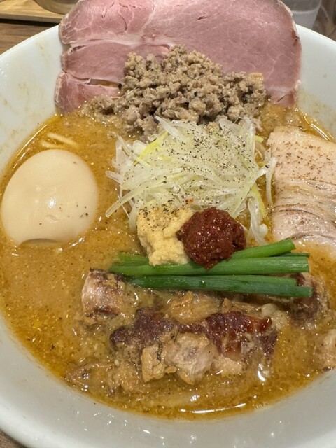 スペシャルには粗挽きミンチ、味玉、バラチャーシューにレアチャーシューのフルオプです。