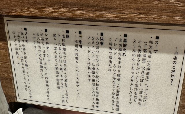 スープ、味噌、辛味噌、麺などどれもこだわりを持っているため、カウンターに説明も貼ってあるので読んでみてくださいね。