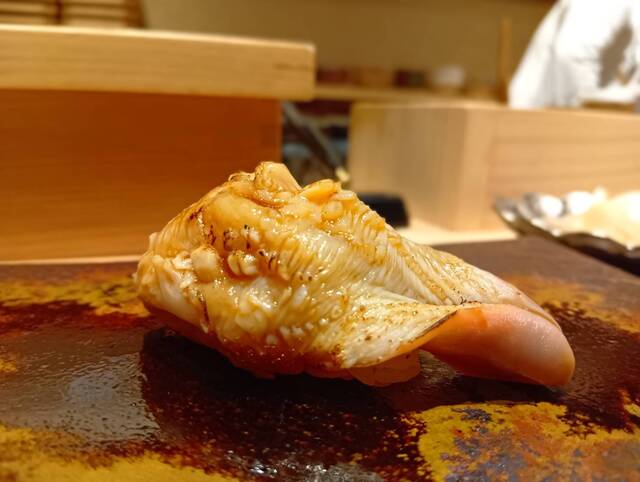 シャリだけを置いて上に白焼きをのせる握らないスタイル、香ばしさとパリパリ感で一気にハートを掴まれました。