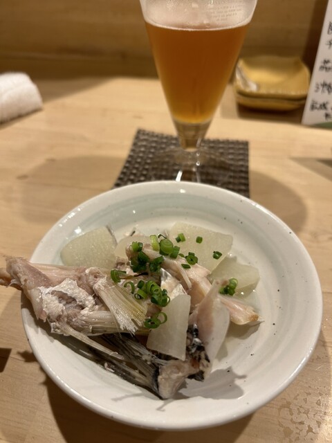 お通しのクオリティも高い。魚のあらを大根と共に薄味で仕上げている。
