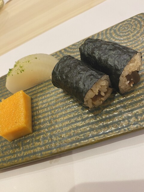 お料理は、大将の目利きが光る旬の素材を惜しみなく使った満足いくコース料理を堪能。新鮮なネタはもちろん、一品一品丁寧に仕上げられた料理の数々は、どれも食べるのがもったいないほどの美しさと美味しさでした。特に、繊細な仕事が施された握りは、口の中でほどけるシャリと、ネタの旨みが相まってまさに絶品です。