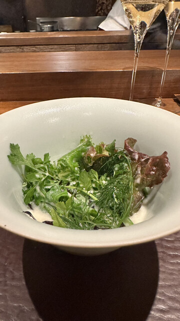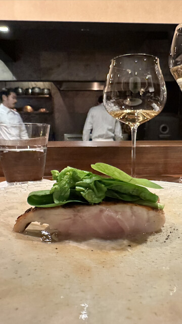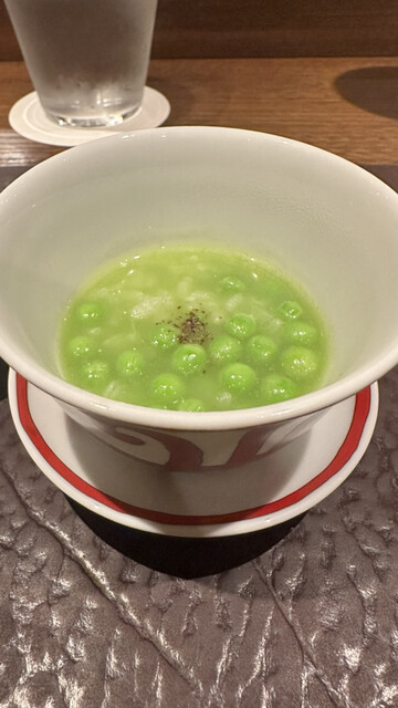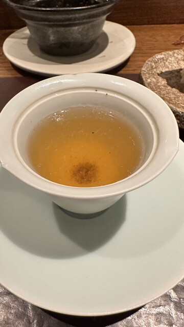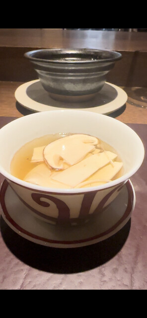 ハモンセラーノを90度で5時間煮出したスープに松茸を合わせて。