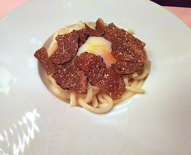 トリュフがこれでもかってくらい乗ってます、温泉卵と相まって最高のソース(o^^o)