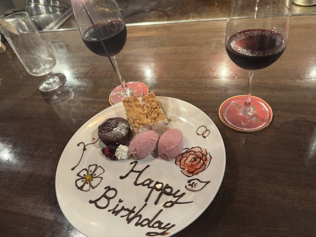 今回、バースデー系の予約はしていなかったのですが、店主さんの計らいでバースデープレートを急遽ご用意していただけました(o^^o)