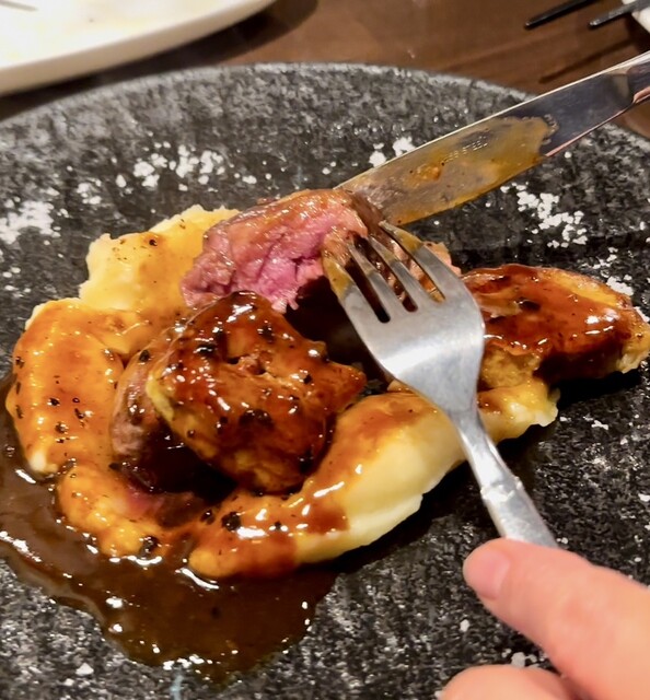 目の前の鉄板の上で調理される名物だし巻き、分厚い牛タンステーキ、そしてロッシーニ(//∇//)