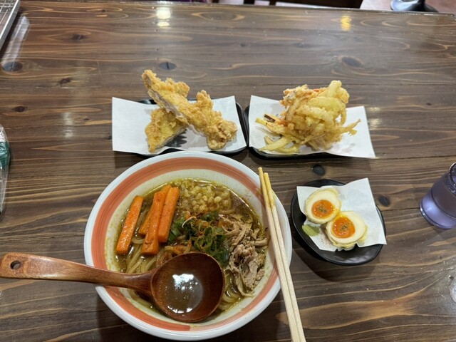 鹿児島空港まで15分の立地なのに、山間の自然豊かな場所で、丸太を使った山小屋の中でゆったり食べれました。食後1時間後には飛行機に乗ってましたが、現実離れできる素...