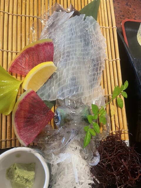 イカ活造りは本当に新鮮でまだ動いていました。コリコリして甘くてほんとに美味しいかった。