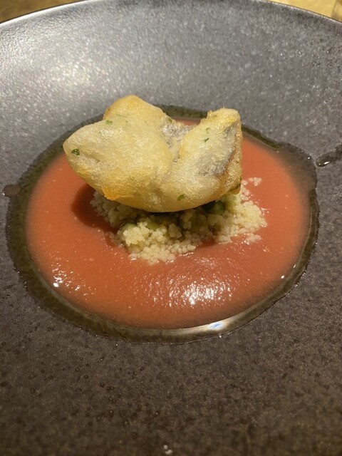 今日もコースメニューにガスパチョが入ってて、嬉しすぎる(涙)今日のパエリアは鯵でした。前回は鰊で、その前は白子で、その前は鮭。どのパエリアも本当に美味しくて、毎回おかわりをさせてもらうのですが、お腹パンパンになります。気さくなシェフと美味しい料理で素敵な時間を過ごせるお店です!!