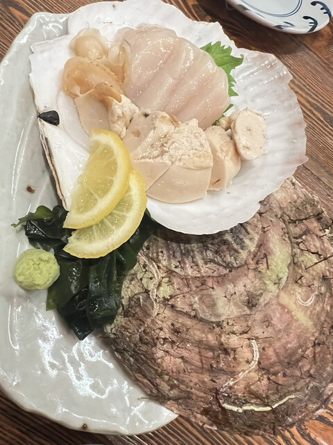 間違えてきた、他の席の人が頼んだホタテの刺身を見て美味しそうですぐに注文!大きくて食べ応えありでした。