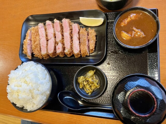 配膳され、かつを見て大きさにびっくり!そして一口食べてさらにびっくり!やわらか〜い。真ん中はピンクでレア?と思うくらいで、他では食べたことのない食感で柔らかい。とんかつなのにさっぱり。
