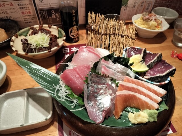いつもの日本酒飲みホとカツオのたたき半々からスタート。久々でもあったので、ちまちまとアテを頼まず、量の多そうなものを幾つか頼んで、とにかく色んな日本酒を飲む方に専念。