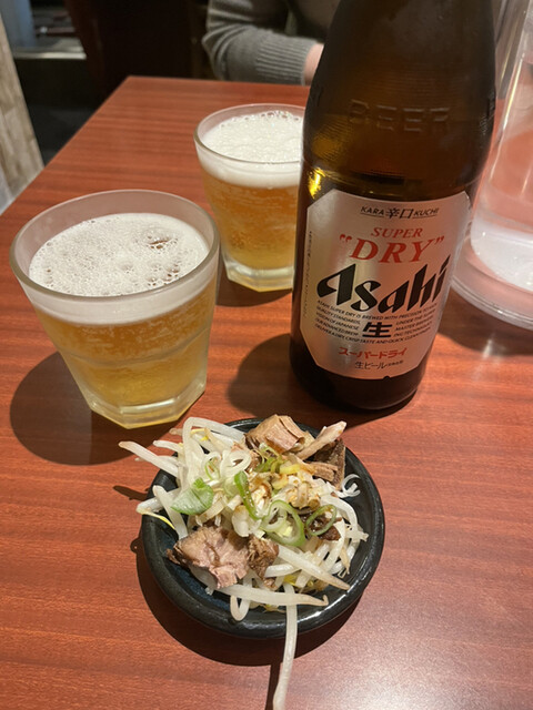まずビールとグラスがいつもちゃんと冷やしてあっておいしい!麺が来るまでにほぼ1本いってしまう位おいしい!おつまみも一緒に付けてもらえるのも良い!