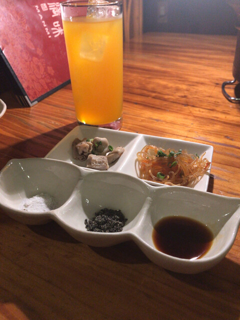 付け味は、ハーブ塩、昆布塩、しょうゆダレでいただきます。