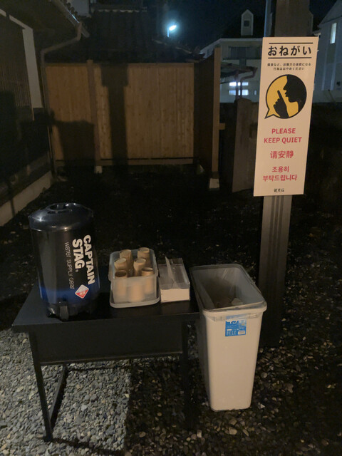 そして暑い中、並ぶ人のために水缶も用意されていました。