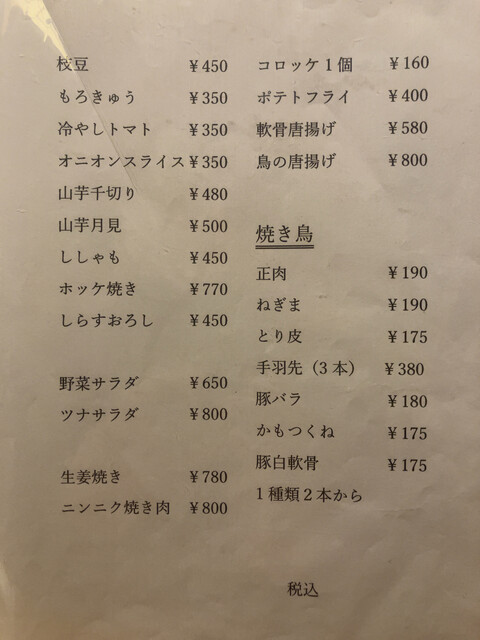 それから焼鳥も1本が180円くらいから食べられます。