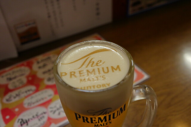 ラテアートのようなプレモルを喉かわきにグビッと呑みつつまつこと数分。