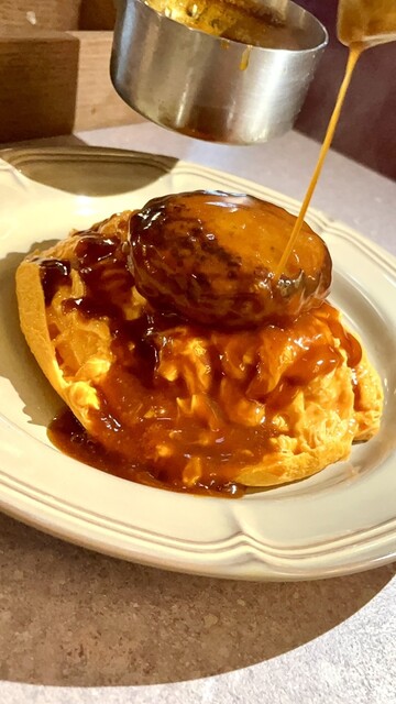 自家製デミグラスとカマンベールソースで