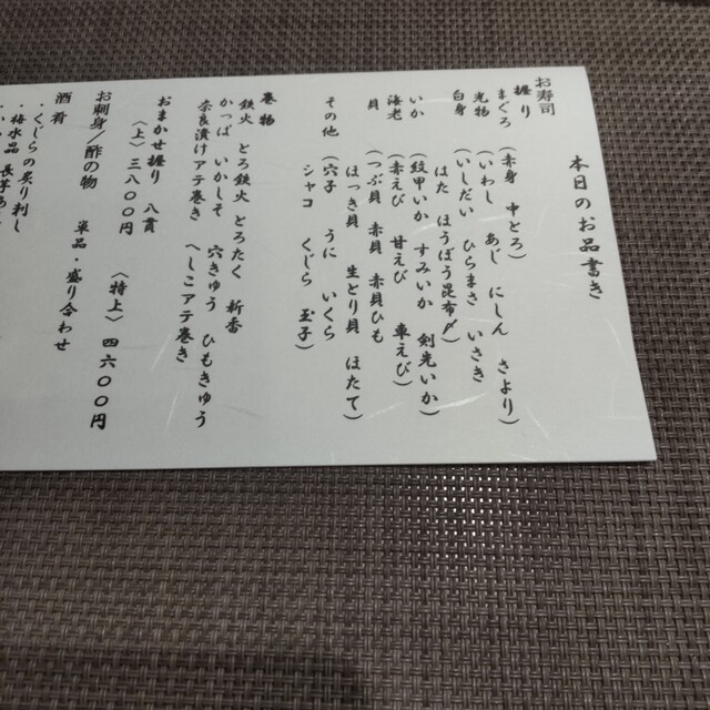 1人1万円程度で高級なおつまみ・お寿司がいただけると思います。