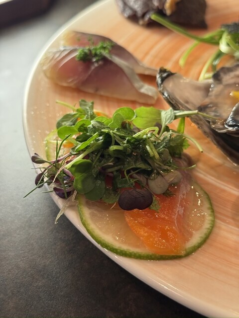 低温蒸し牡蠣、鮮魚のカルパッチョ、