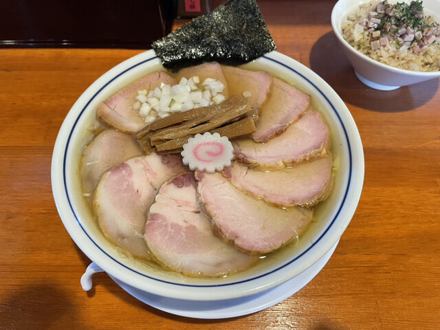 無難な「中華そば」(煮玉子入り)+「チャーシューごはん」をオーダー。