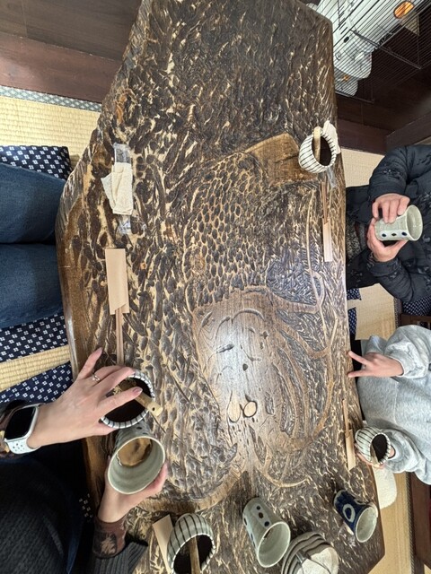 龍が彫られているテーブル