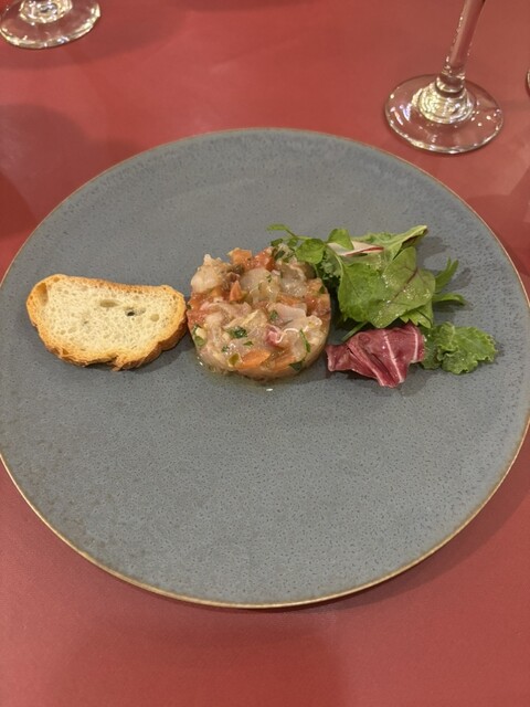 結婚記念日の為、飲食店を探していたらGマップで高評価のイタリアンを見つけメールでSコースを予約。平日夕方6時入店。他のお客さんは無し。その後お子さん連れのお客さんが入りなぜかホットする。肩肘張る店では無い様子。最初にアルコールを控えている為ノンアルコールのシャンパンを注文。ノンアルなのに甘ったるく無く美味しい。