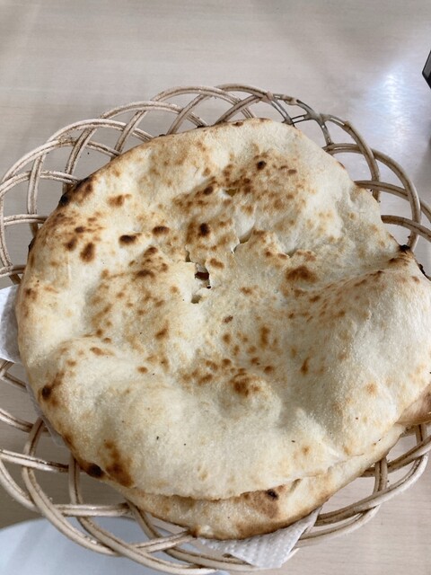 パリッと焼けてるナンも本当に美味しい!アタ粉も少し配合されてるのか少し茶色で、香ばしさと味わいが深いです。1枚目切れ目が入ってサクッ!縁むっちり。2枚目は切れ目なく、中心部もふわふわ。ナンは生地と焼く方の力量やと思うのですが、どちらも抜群!
