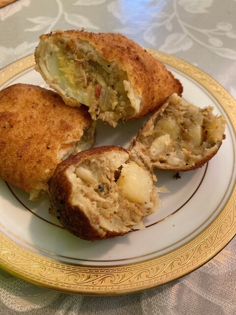 スリランカカツレツはスパイスの抜けが良く、ロールスはゆで卵入りで優しく、オムレツは玉ねぎたっぷり家庭的な味です。