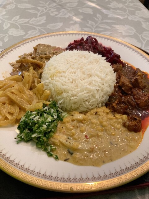 日替わりカレーが5種。ビーツがある時は嬉しい。ちょっとクタッとしたビーツの優しい甘さにスパイスがキリリ効いてます。ダルもココナッツの甘さと辛味加減が違い日によって違うのも楽しく発見があります。チキンも他にはないスパイスのキレがめっちゃありますね。最近のヒットはカシューナッツ。ほくほろの食感が面白い。