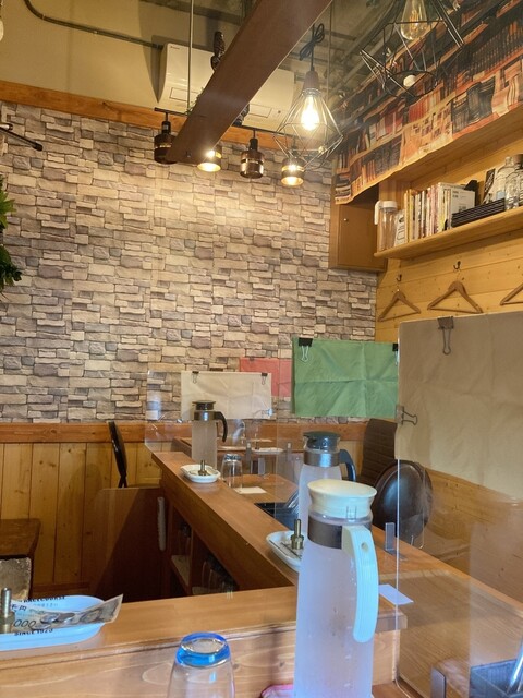大きい道路沿いからではなく反対側が入り口です。木を基調にされた明るい店内。カウンターは広く仕切りも有ります。5席ですが、混んでくると奥の部屋に案内してくれます。(まだ行った事ありませんが) 提供は早いです。腹ぺこで行っても安心。小でご飯150g?大400gはお皿の大きさと山盛りご飯の迫力にビビります。(他のお客さんのをチラ見。自分は並が最大…)