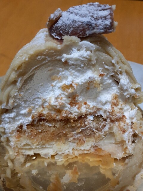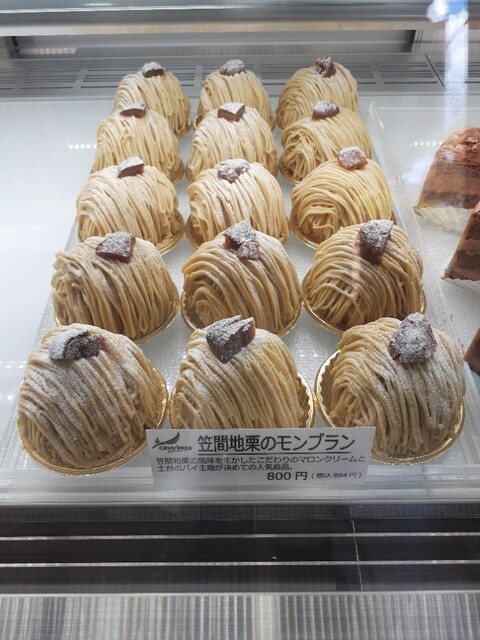 ショーケースに陳列されたケーキ類の中にモンブラン発見。