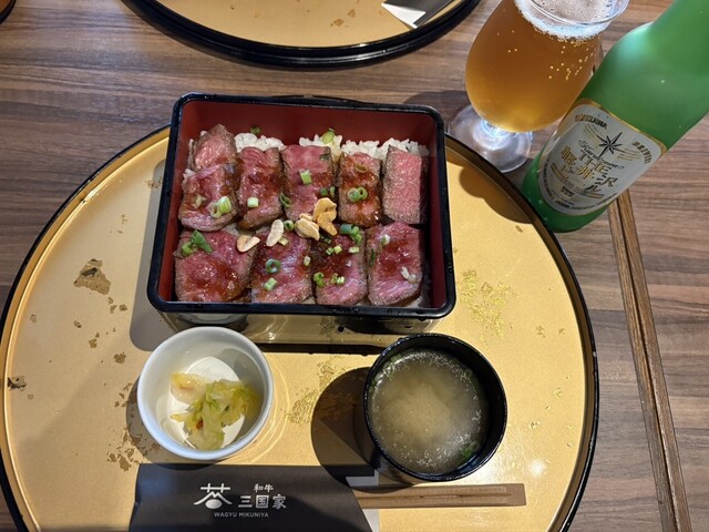 12時過ぎでしたが、運良くすぐ席に案内されました。和牛ステーキ重は100gと200gあり、肉の銘柄も赤城牛と尾崎牛と選べます。