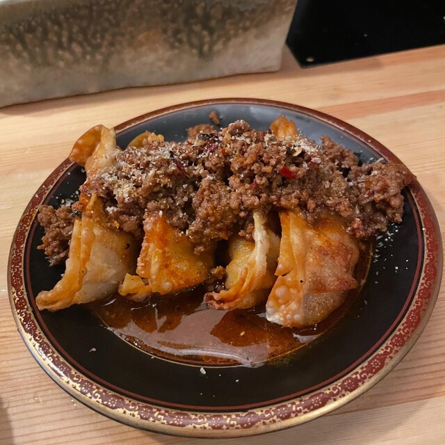 ☑︎揚げ餃子の和牛麻婆餡掛け ¥450