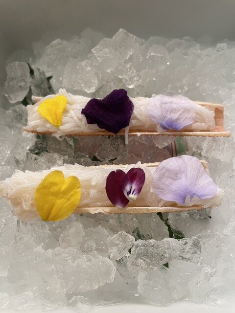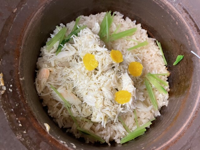 最初に運ばれたのは、松葉がに。甲羅に全部ほぐして入ってます。贅沢ですね〜。しかも、雲丹、キャビア、蟹味噌などと食べれる幸せ。最高に美味しいです。