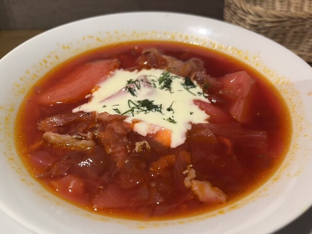 ロシア料理ってあまり聞きませんが、ボルシチはかなり美味しいロシアの家庭料理です❗️こちらのお店ではボルシチを堪能できますよ‼️