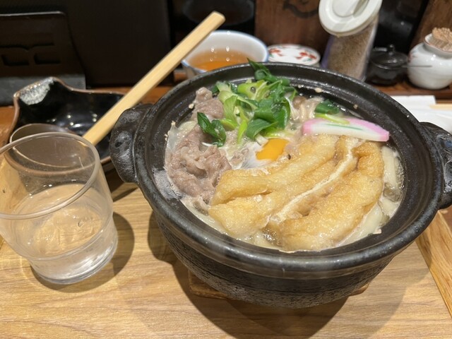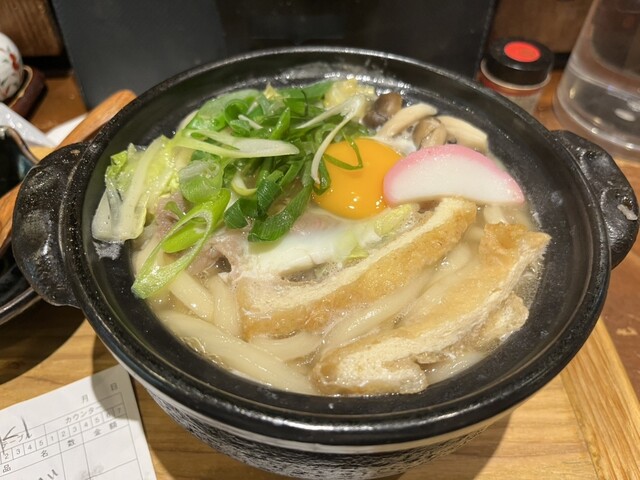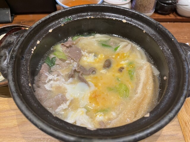 こちらの鍋焼きうどんとてもいい美味しいです。うどんが半分になってから卵に手をつけるように毎回教えていただきますが、その後半の卵を潰しからがさらに美味しくなります‼️