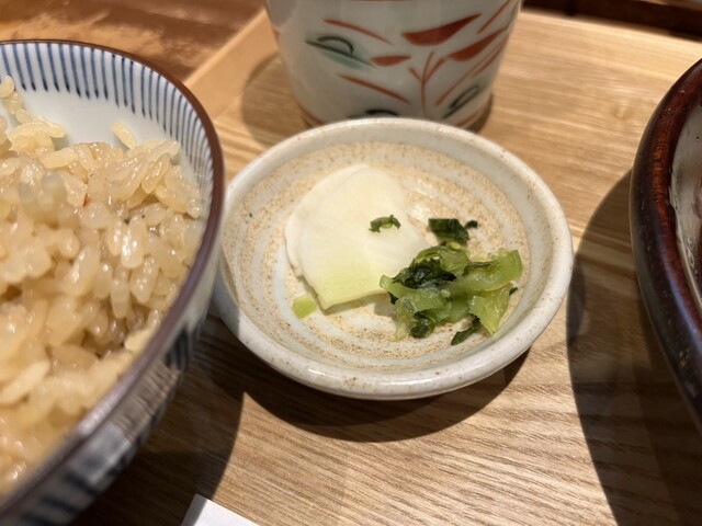 うどんを食べ終われば、麻婆茄子のつけ汁の中に〆のご飯を入れて頂きました。ご飯はお茶碗に少し少なめに入ってましたが、これも考えられた量だったのかも……。この食べ方も美味しかったです。