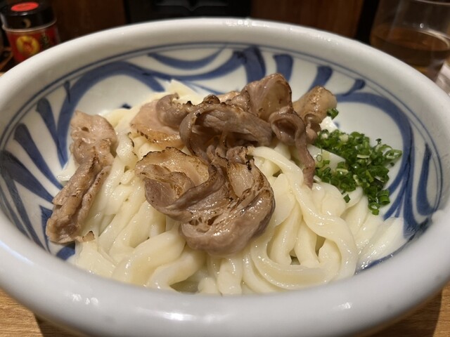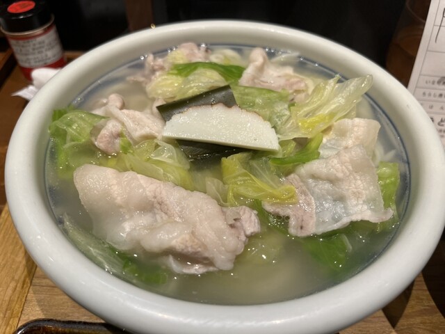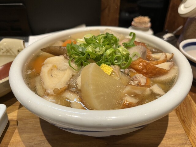 お出しが白いです。たぶん美味しさの秘密がこの白色に隠されてるのかも(笑)。ごぼうや白菜がとても美味しいです。あん餅は後半に。鍋焼きうどんの卵と同じように後半に手をつける方が良さそうです‼️