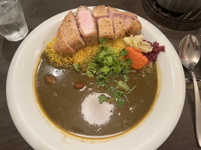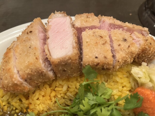 カレーはシンプルで美味しいです。カツもサクサクに揚がっててとても美味しいです❗️ご飯も少し変わってます。それが美味しいです(笑)。もう言うことありません(笑)。